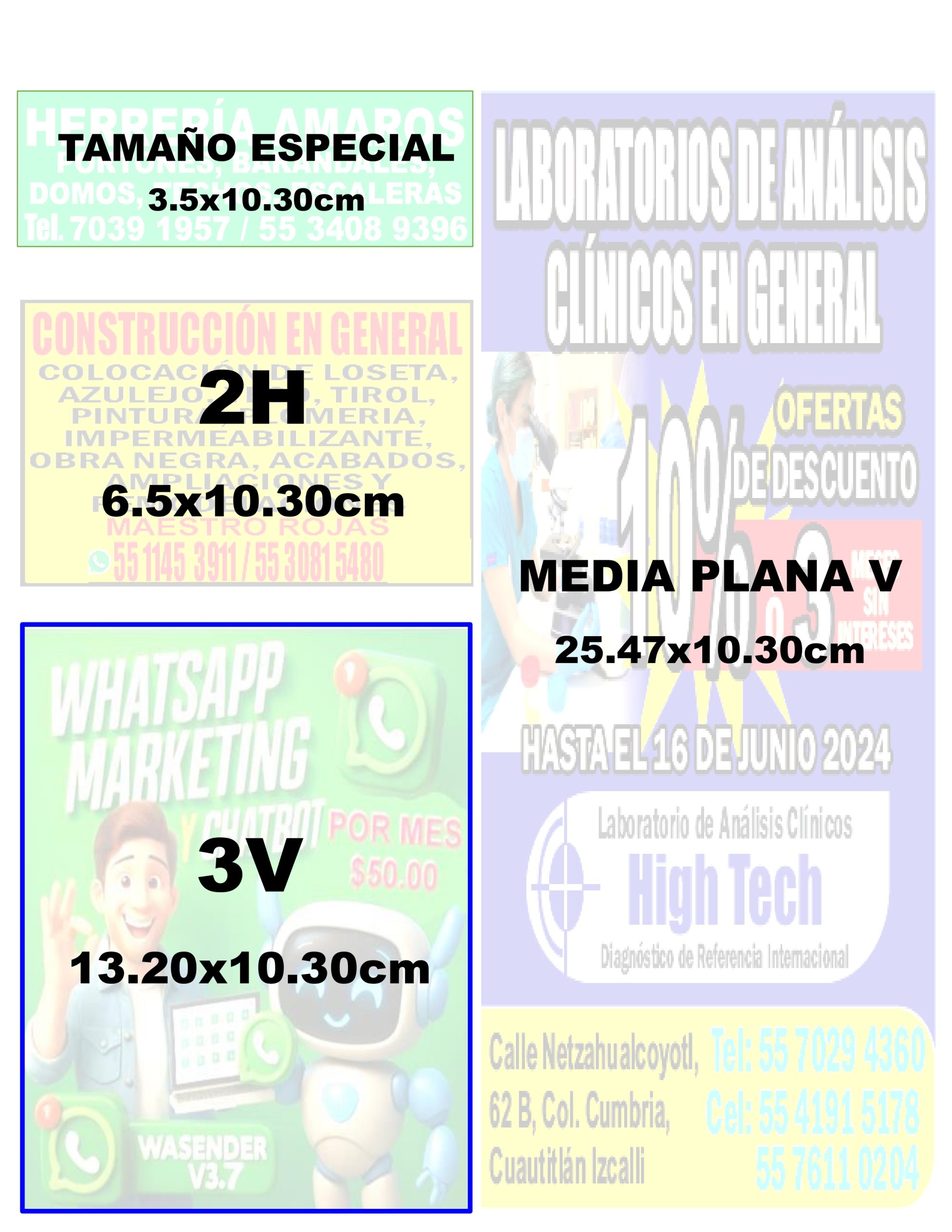 | MEDIA PLANA V (26x10) cm | $1,500.00 | $3,000.00 | $2,400.00 |
